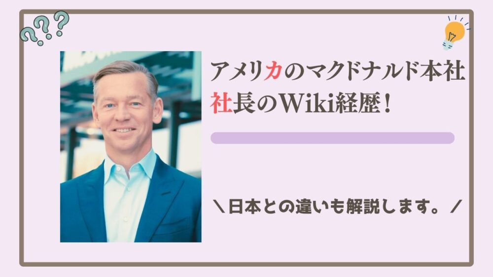 アメリカのマクドナルド本社社長のWiki経歴!日本との違いも解説します。
