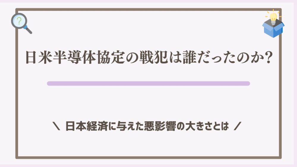 1986年に締結された「日米半導体協定」は、 日本の半導体産業に大きな打撃を与えたと語り継がれています。 当時は世界市場を席巻していた日本企業が急速に衰退する転機となったのでした。 その背景には“戦犯”とも呼ばれる政治的判断や外交圧力が存在しまし... -