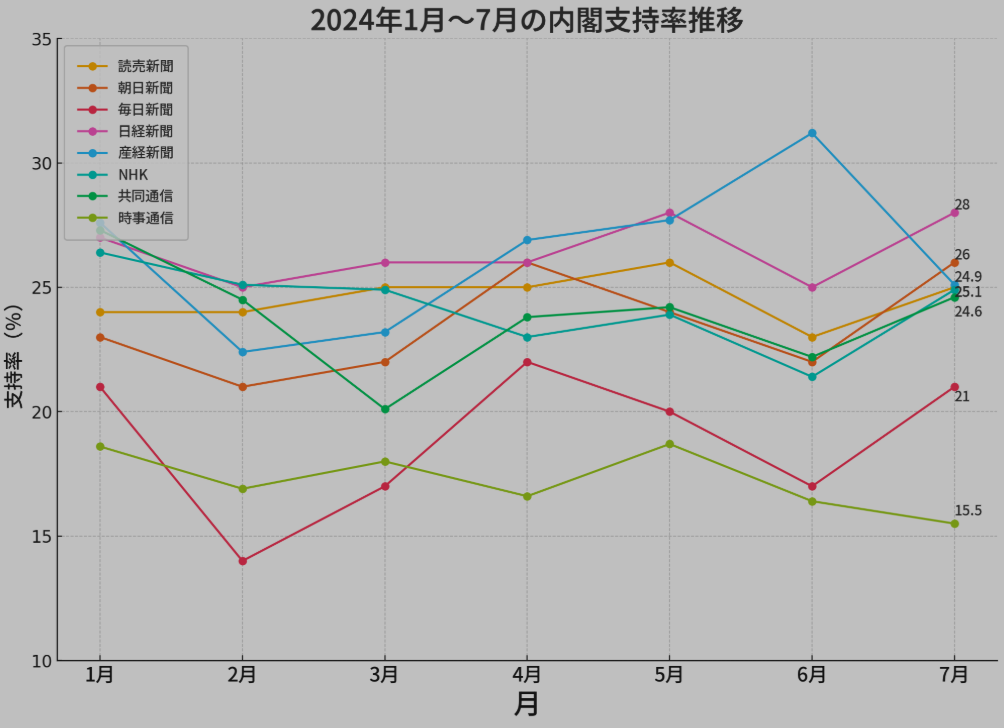 共同通信を含む報道機関の内閣支持率・選挙情勢調査が、